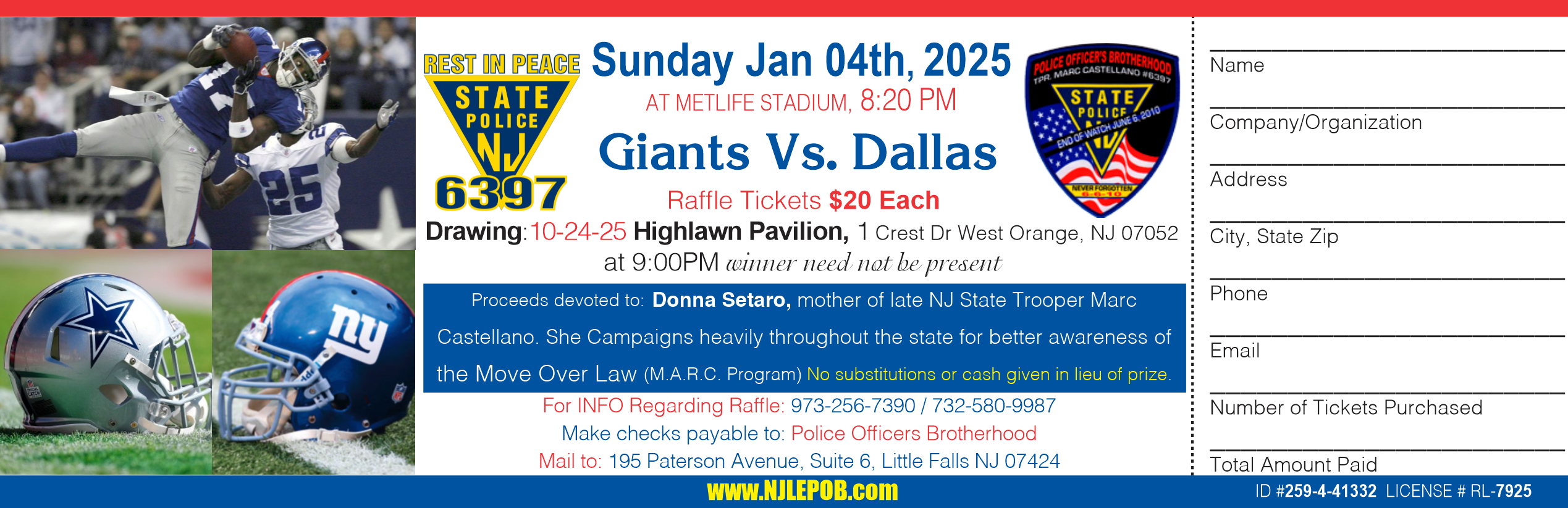 drawing to help Donna raise funds and awareness to the Move Over Law the winner of the Giants/Dallas